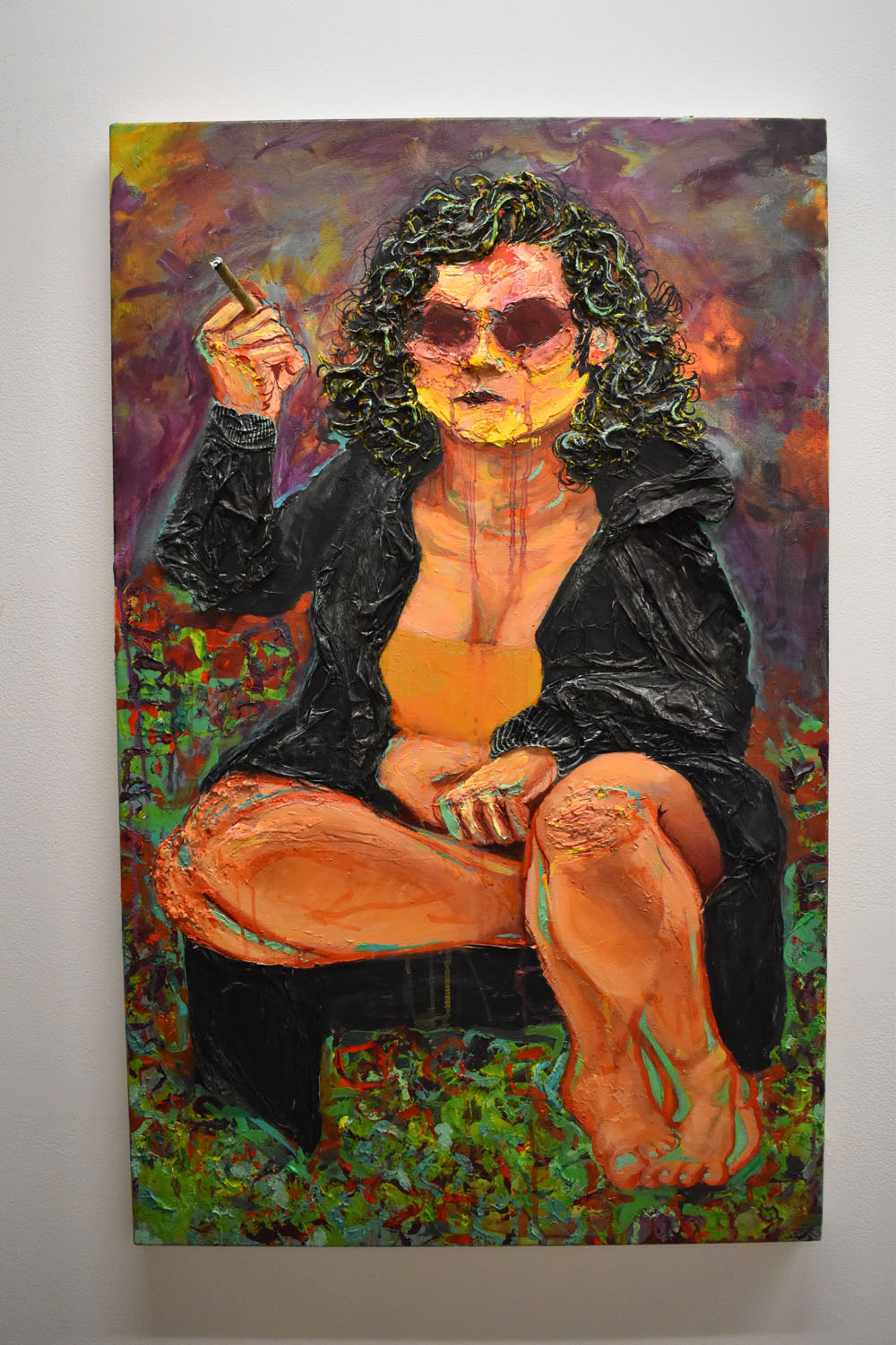 Genna Medina-Cook was born and raised in South Boston, MA. Medina-Cook, affectionately known as “MC'' to few peers, is a master of her own ceremonies. From childhood theatre kid prodigy turned visual artist, the arts have always been a central force guiding her through life. Throughout her career, she holds every artistic space she has been through close to her heart. Genna received her Bachelor of Fine Art in Painting at Maine College of Art & Design. Her painting practice seeks to find a balance between using representational and abstraction to depict aspects of identity, behavior, and belonging. Her work takes on an immersive quality that extends off of the surface into space with the viewer. Provoked by the body, and nostalgia, she seeks to either personify, and recreate experiences her audience can connect with. Outside of making, she spends time with loved ones, and throws herself into chaotic moshpits at hardcore shows.