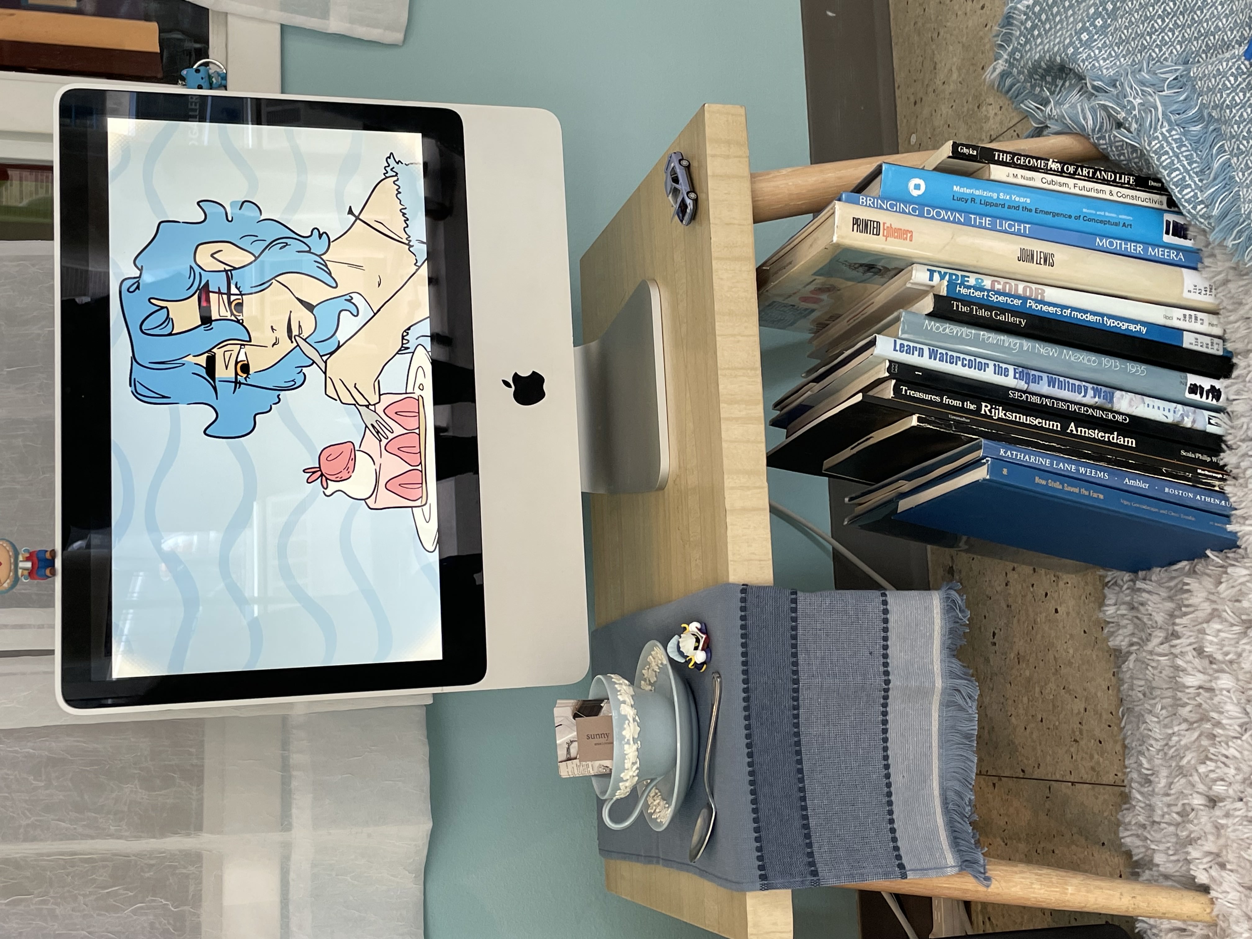 Sunny, before all else, is a purple person (their favorite color being #a57df0). Much of their work revolves around color and the human condition. It is put into practice through a term they call "colorfetish," which is the intentional immersion and self-embodiment of a color in both life and art. Currently they are contemplating how their physical practice may be teetering on the line of coping and self-destruction.